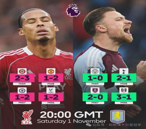 明晨4点,四连败利物浦PK四连胜维拉,斯洛特冲英超百分