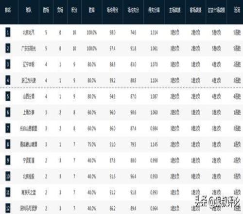 CBA最新排名:京粤5连胜争第1辽厦晋难分高低浙江1胜4负惹争议