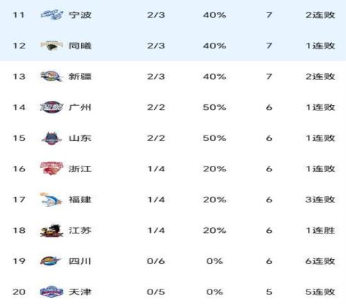 随着新疆惨败青岛,深圳送四川6连败,CBA积分榜:2大黑马升前四