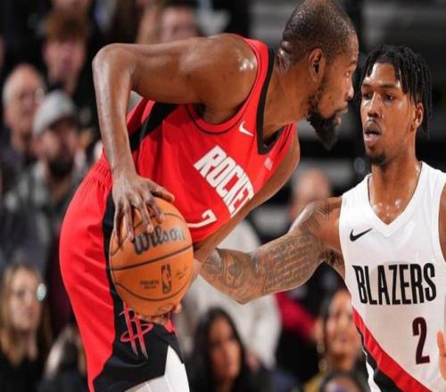 整个上半场,主场作战的开拓者展现出了良好的进攻手感,阿夫迪亚里突外投,夏普冲击力十足,再加上球队的双塔战术,几乎令球队一直占据进攻端的优势。反观火箭队,显得有些士气不足,进攻端只能依靠杜兰特一个人冲锋陷阵,其他球员外线的手感降至冰点,出手15次仅仅命中2球。